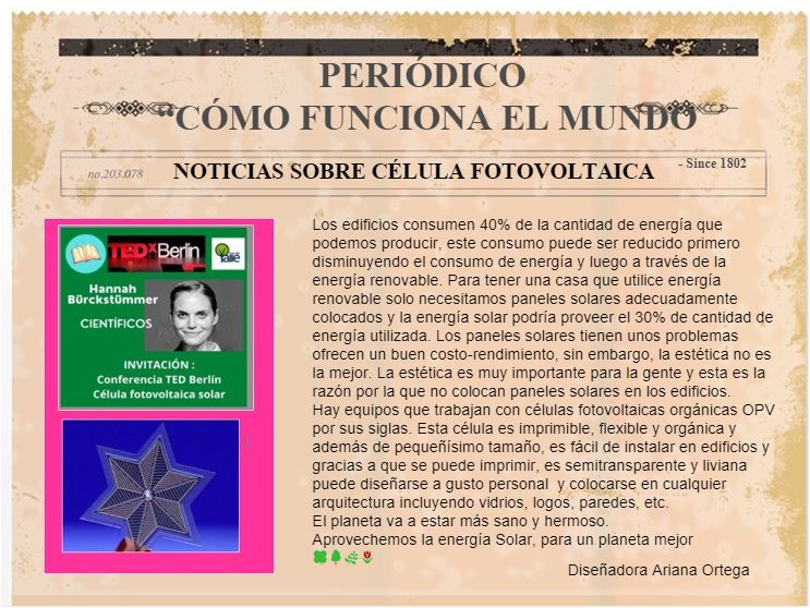 Conferencia Hannah Bürckstümmer sobre la célula solar voltaica y luego escribe a manera de periódico lo que comprendiste de la conferencia en el formato de periódico PowerPoint.